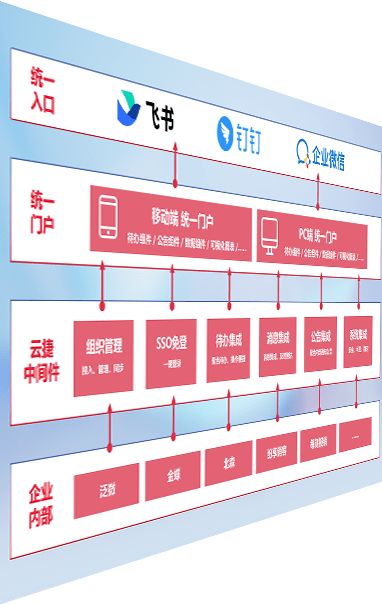 对协作平台提供支持服务,,支持企业应用与协作平台对接,,包含组织同步、、、消息集成、、待办集成等。。支持目前主流的协作平台:钉钉、、、企微和飞书。。。